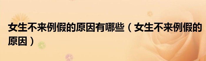 关于女生不来例假的原因有哪些,女生不来例假的原因这个很多人还不知道,今天菲菲来为大家解答以上的问题,现在让我们一起来看看吧!