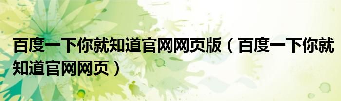 百度一下你就知道官网网页版(百度一下你就知道官网网页)