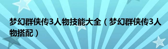关于梦幻群侠传3人物技能大全,梦幻群侠传3人物搭配这个很多人还不知道,今天菲菲来为大家解答以上的问题,现在让我们一起来看看吧!