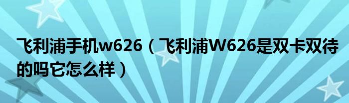 1,飞利浦W626是双卡双待的吗它怎么样:应该是吧 还可以吧