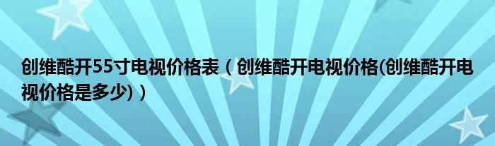 大家好,小常来为大家解答以上问题。创维酷开55寸电视价格表,创维酷开电视价格(创维酷开电视价格是多少)很多人还不知道,现在让我们一起来看看吧!