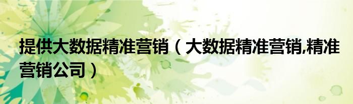 大家好,小常来为大家解答以上问题。提供大数据精准营销,大数据精准营销,精准营销公司很多人还不知道,现在让我们一起来看看吧!
