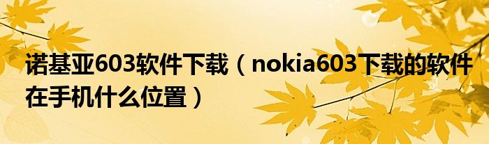 大家好,小常来为大家解答以上问题。诺基亚603软件下载,nokia603下载的软件在手机什么位置很多人还不知道,现在让我们一起来看看吧!