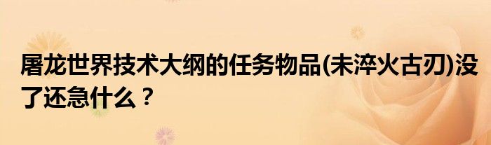 关于屠龙世界技术大纲的任务物品(未淬火古刃)没了还急什么?这个很多人还不知道,今天菲菲来为大家解答以上的问题,现在让我们一起来看看吧!