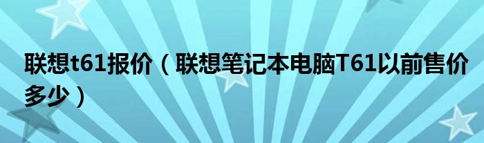 1,联想笔记本电脑T61以前售价多少?:根据配置了,上市价格都在万元以上