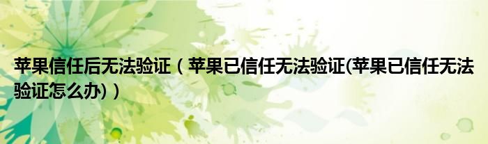 大家好,小常来为大家解答以上问题。苹果信任后无法验证,苹果已信任无法验证(苹果已信任无法验证怎么办)很多人还不知道,现在让我们一起来看看吧!