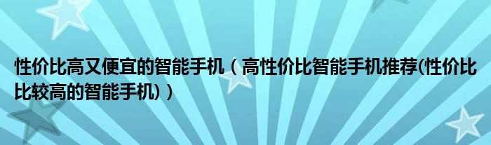 性价比高又便宜的智能手机(高性价比智能手机推荐(性价比比较高的智能手机))