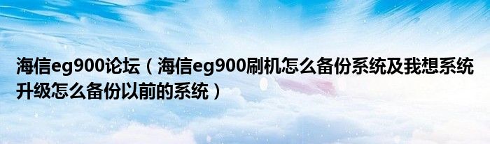 海信eg900论坛(海信eg900刷机怎么备份系统及我想系统升级怎么备份以前的系统)