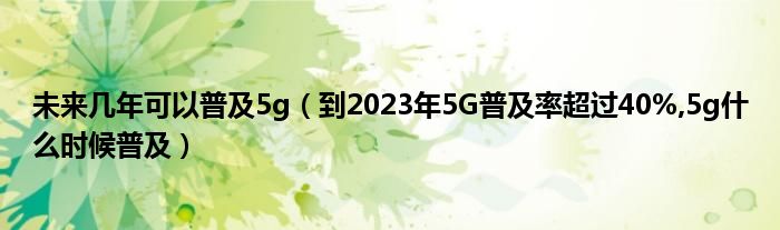 大家好,小常来为大家解答以上问题。未来几年可以普及5g,到2023年5G普及率超过40%,5g什么时候普及很多人还不知道,现在让我们一起来看看吧!