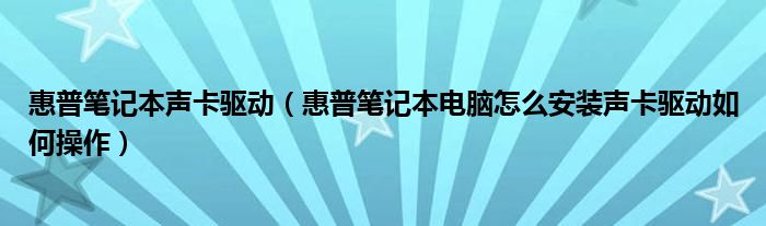 3,惠普笔记本声卡驱动如何安装 :先去官网下载你机器型号、系统类型(32位或64位 要分清)的驱动,注意win7驱动 分32位和64位的。 再安装就行了。 估计你是选错了驱动,不然不会问这个问题。