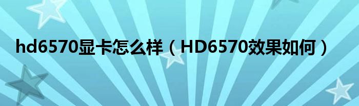 1,HD6570效果如何 :耗能小最大功耗50W级别的性能一般般跟GT630一个档次,只够中等特效玩玩一般的网游如果不是电源太差,买略贵几十元的盈通6770 性能好很多哦
