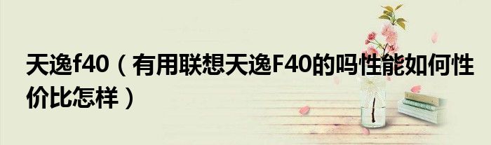 1,有用联想天逸F40的吗性能如何性价比怎样:天逸作为联想在未推出Y430 Y450 /V450之前 还是很不错的系列但是现在是即将淘汰的机型建议不要购买建议选择Y450 或是在V450中选择