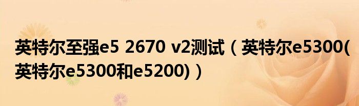 大家好,小常来为大家解答以上问题。英特尔至强e5 2670 v2测试,英特尔e5300(英特尔e5300和e5200)很多人还不知道,现在让我们一起来看看吧!