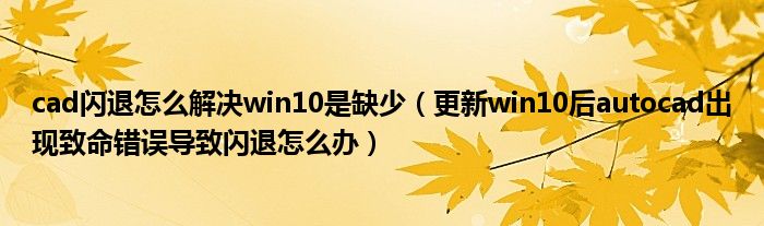 大家好,今天小悦来为大家解答以上问题。cad闪退怎么解决win10是缺少,更新win10后autocad出现致命错误导致闪退怎么办很多人还不知道,现在让我们一起来看看吧!
