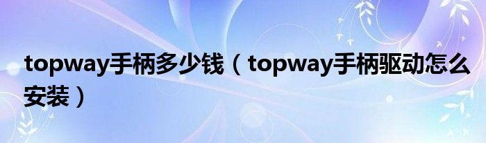 大家好,今天小悦来为大家解答以上问题。topway手柄多少钱,topway手柄驱动怎么安装很多人还不知道,现在让我们一起来看看吧!