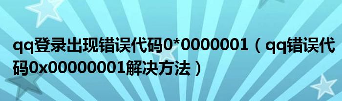 大家好,今天小悦来为大家解答以上问题。qq登录出现错误代码0*0000001,qq错误代码0x00000001解决方法很多人还不知道,现在让我们一起来看看吧!