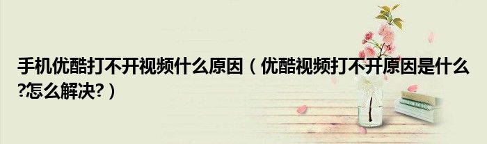 大家好,今天小悦来为大家解答以上问题。手机优酷打不开视频什么原因,优酷视频打不开原因是什么?怎么解决?很多人还不知道,现在让我们一起来看看吧!