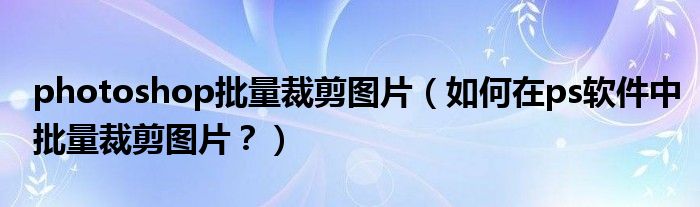 大家好,今天小悦来为大家解答以上问题。photoshop批量裁剪图片,如何在ps软件中批量裁剪图片?很多人还不知道,现在让我们一起来看看吧!