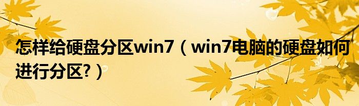 怎样给硬盘分区win7(win7电脑的硬盘如何进行分区?)