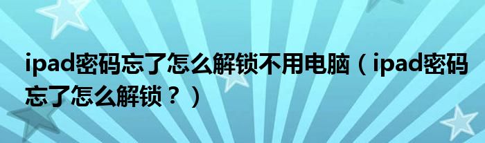 大家好,今天小悦来为大家解答以上问题。ipad密码忘了怎么解锁不用电脑,ipad密码忘了怎么解锁?很多人还不知道,现在让我们一起来看看吧!