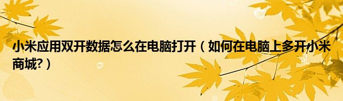 大家好,今天小悦来为大家解答以上问题。小米应用双开数据怎么在电脑打开,如何在电脑上多开小米商城?很多人还不知道,现在让我们一起来看看吧!