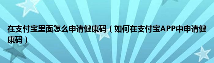 大家好,今天小悦来为大家解答以上问题。在支付宝里面怎么申请健康码,如何在支付宝APP中申请健康码很多人还不知道,现在让我们一起来看看吧!