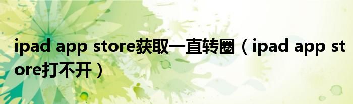 大家好,小飞来为大家解答以上问题,ipad app store获取一直转圈,ipad app store打不开很多人还不知道,现在让我们一起来看看吧!
