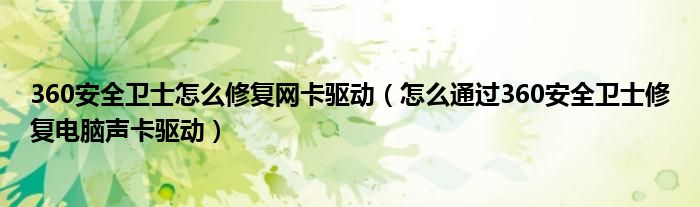 大家好,今天小悦来为大家解答以上问题。360安全卫士怎么修复网卡驱动,怎么通过360安全卫士修复电脑声卡驱动很多人还不知道,现在让我们一起来看看吧!