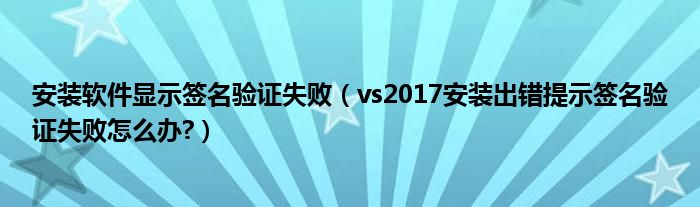 大家好,今天小悦来为大家解答以上问题。安装软件显示签名验证失败,vs2017安装出错提示签名验证失败怎么办?很多人还不知道,现在让我们一起来看看吧!