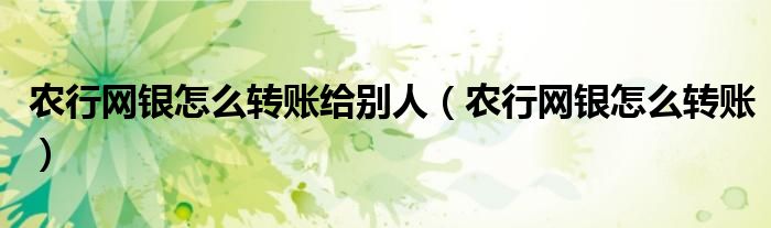 大家好,小飞来为大家解答以上问题,农行网银怎么转账给别人,农行网银怎么转账很多人还不知道,现在让我们一起来看看吧!