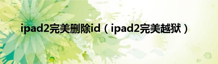 大家好,小飞来为大家解答以上问题,ipad2完美删除id,ipad2完美越狱很多人还不知道,现在让我们一起来看看吧!