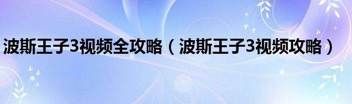 大家好,小飞来为大家解答以上问题,波斯王子3视频全攻略,波斯王子3视频攻略很多人还不知道,现在让我们一起来看看吧!