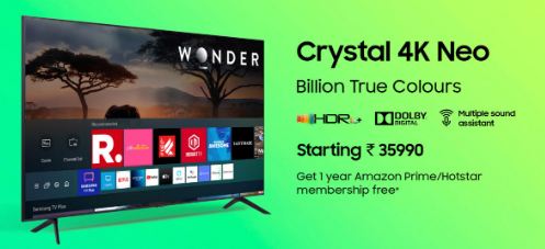 Crystal 4K Neo 电视以35,990 卢比(461 美元)的价格登陆。如前所述,三星正在通过自己的电子商店、亚马逊和 Flipkart 推出这款电视。