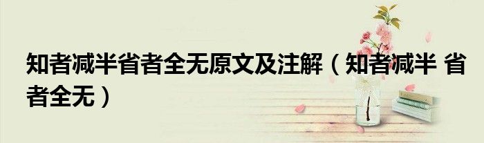 知者减半省者全无原文及注解,知者减半 省者全无这个很多人还不知道,小飞来为大家解答以上的问题。现在让我们一起来看看吧!