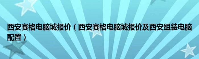 6,西安赛格电脑城报价 :我昨天去看了一下,2楼有组装电脑的,看见最低的是1800多,最高的估计也就4000多,现在这些东西都便宜,卖个22寸宽屏液晶才1200左右。