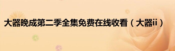 大家好,慧慧来为大家解答以上问题,大器晚成第二季全集免费在线收看,大器ii很多人还不知道,现在让我们一起来看看吧!