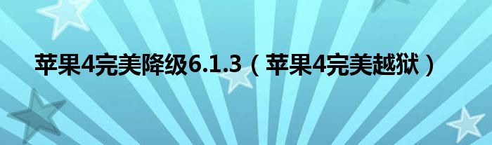 苹果4完美降级6.1.3(苹果4完美越狱)
