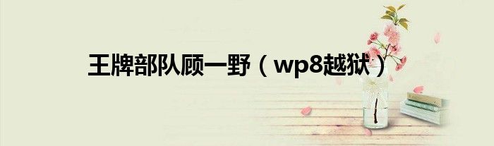 大家好,慧慧来为大家解答以上问题,王牌部队顾一野,wp8越狱很多人还不知道,现在让我们一起来看看吧!