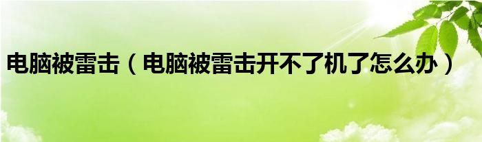 1,电脑被雷击开不了机了怎么办 :电脑在关机状态遭到雷击无法开机的解决方法:如果在关机状态,我们发现电脑遭到雷击开不了机,这时候电脑的故障可能是由于主板或者显卡出现了问题。首先我们看一看自己的电脑是否处于通电状态,如果电源线与电源是相接的,那么这时候这种情况可能是主板出现了问题。可以使用一些 电流表 和电压表进行测量,如果是主板出现了问题,那么我们只能够更换主板。如果用其他的电脑测试出主板没有问题,而是显卡CPU出现损坏,那么只需要更换显卡CPU就可以了。 电脑在开机状态遭到雷击无法开机的解决方法:在开机状态遭到雷击则有可能是硬件收到破坏,首先我们打开机箱,观察哪一个地方有烧焦的痕迹,如果观察不出来,可以用鼻子闻哪里有烧焦的味道,如果有烧焦的味道,则说明这里受到了一定的损伤,如果观察和鼻子无法检测到硬件的损伤,这时候就需要用硬件工具去测试,主要测试的地方适应主板或者是电源。如何防止电脑被雷击:电脑被雷击主要是通过网线或者 电线 等方面的时候,要预防电脑被雷击就有方法了。当出现雷雨天气的时候,我们最好将网线拔掉,再将电源 插头 拔掉,这样是最有效的。