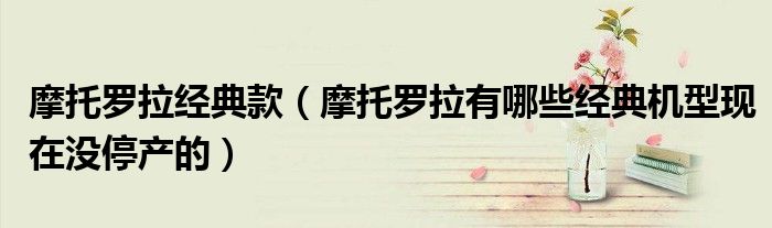1,摩托罗拉有哪些经典机型现在没停产的:每年都更新换代经典只存在过去,经典不代表不停产很少手机还能上市超过3年得,2年到是有。买经典的硬件配置跟不上,系统优化不好,MOTO现在都是安卓系统手机,触屏,侧滑键盘,商务 只能中高端机子,双核手机