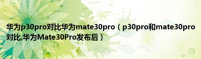 大家好,小常来为大家解答以上问题。华为p30pro对比华为mate30pro,p30pro和mate30pro对比,华为Mate30Pro发布后很多人还不知道,现在让我们一起来看看吧!