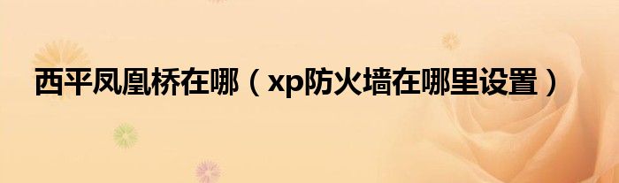 大家好,慧慧来为大家解答以上问题,西平凤凰桥在哪,xp防火墙在哪里设置很多人还不知道,现在让我们一起来看看吧!