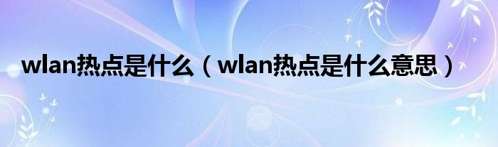 WLAN热点是什么意思?