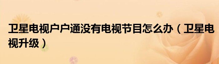 大家好,慧慧来为大家解答以上问题,卫星电视户户通没有电视节目怎么办,卫星电视升级很多人还不知道,现在让我们一起来看看吧!