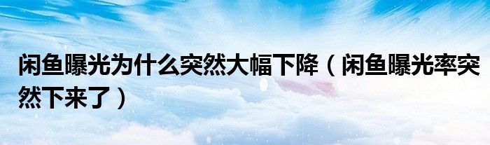 大家好,跳跳为你解答以上问题。闲鱼曝光为什么突然大幅下降,闲鱼曝光率突然下来了这个问题很多人还不知道,现在让我们一起来看看吧!