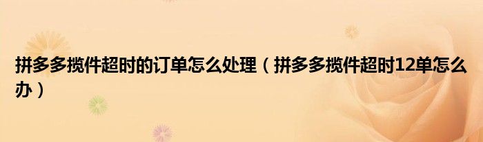 大家好,跳跳为你解答以上问题。拼多多揽件超时的订单怎么处理,拼多多揽件超时12单怎么办这个问题很多人还不知道,现在让我们一起来看看吧!