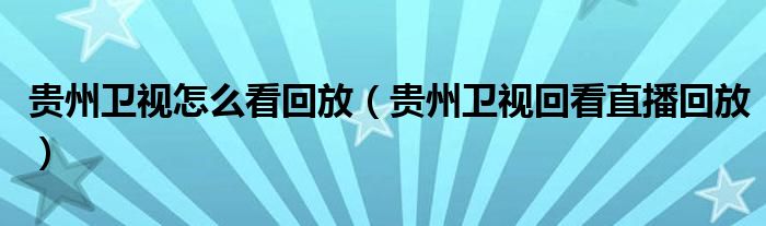 贵州卫视怎么看回放(贵州卫视回看直播回放)
