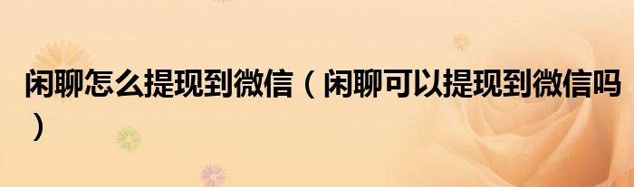 大家好,跳跳为你解答以上问题。闲聊怎么提现到微信,闲聊可以提现到微信吗这个问题很多人还不知道,现在让我们一起来看看吧!