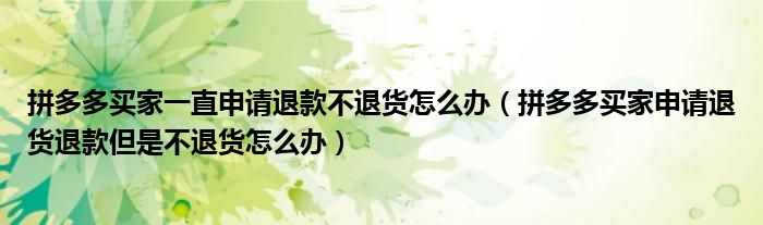 大家好,跳跳为你解答以上问题。拼多多买家一直申请退款不退货怎么办,拼多多买家申请退货退款但是不退货怎么办这个问题很多人还不知道,现在让我们一起来看看吧!