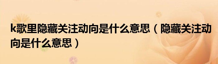 大家好,跳跳为你解答以上问题。k歌里隐藏关注动向是什么意思,隐藏关注动向是什么意思这个问题很多人还不知道,现在让我们一起来看看吧!